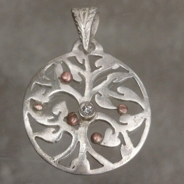 Ciondolo Albero della Vita in argento rame e diamante