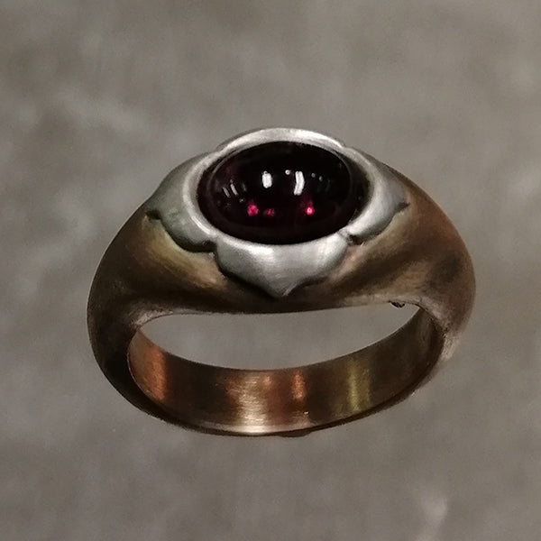 Anello donna artigianale Sarah in bronzo rosso satinato e argento 925 satinato con tormalina rosa naturale