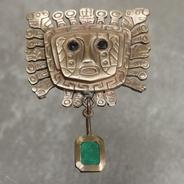 CIONDOLO ARTIGIANALE AZTECO IN BRONZO ZAFFIRI E SMERALDO