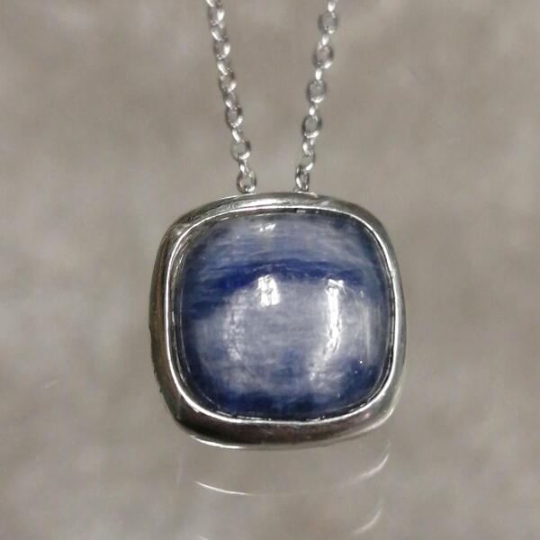 Ciondolo artigianale cianite in argento 925. dimensioni pietra cm 1 collana rolò cm 40 gioiello senza nichel