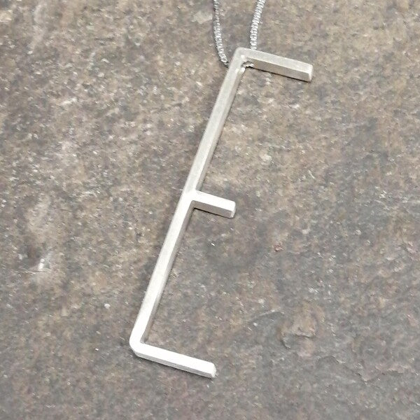 Ciondolo lettera E in argento con collana. fatto a mano .la lettera è 4 cm