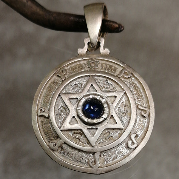 Ciondolo Sigillo di Salomone in argento 925 con zaffiro