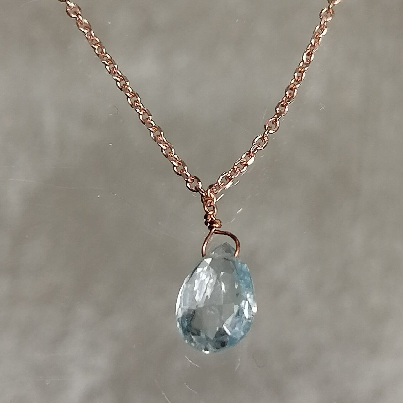 Girocollo in argento rosa e acqua marina a goccia
