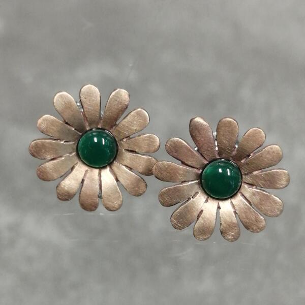 Orecchini artigianali Margherita in bronzo e agata verde. fatti a mano senza nichel