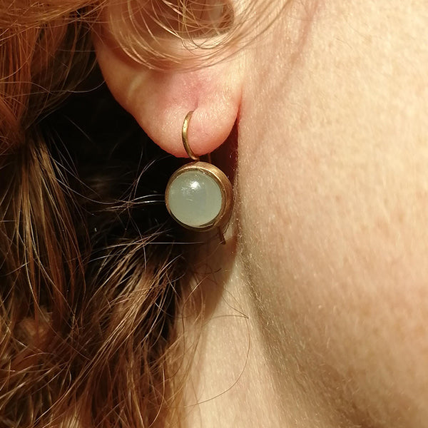 Orecchini artigianali in bronzo rosso satinato e acquamarina milk. senza nichel